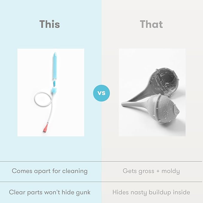 - EASY TO CLEAN & REUSE FOR DAILY BABY CARE: The blue nasal tube, red mouthpiece, and filter cap are all top-rack dishwasher safe, making cleanup simple and efficient. For added hygiene, the long, clear tube can be sanitized with 70% isopropyl alcohol. This reusable device is cost-effective and environmentally friendly compared to disposable alternatives.