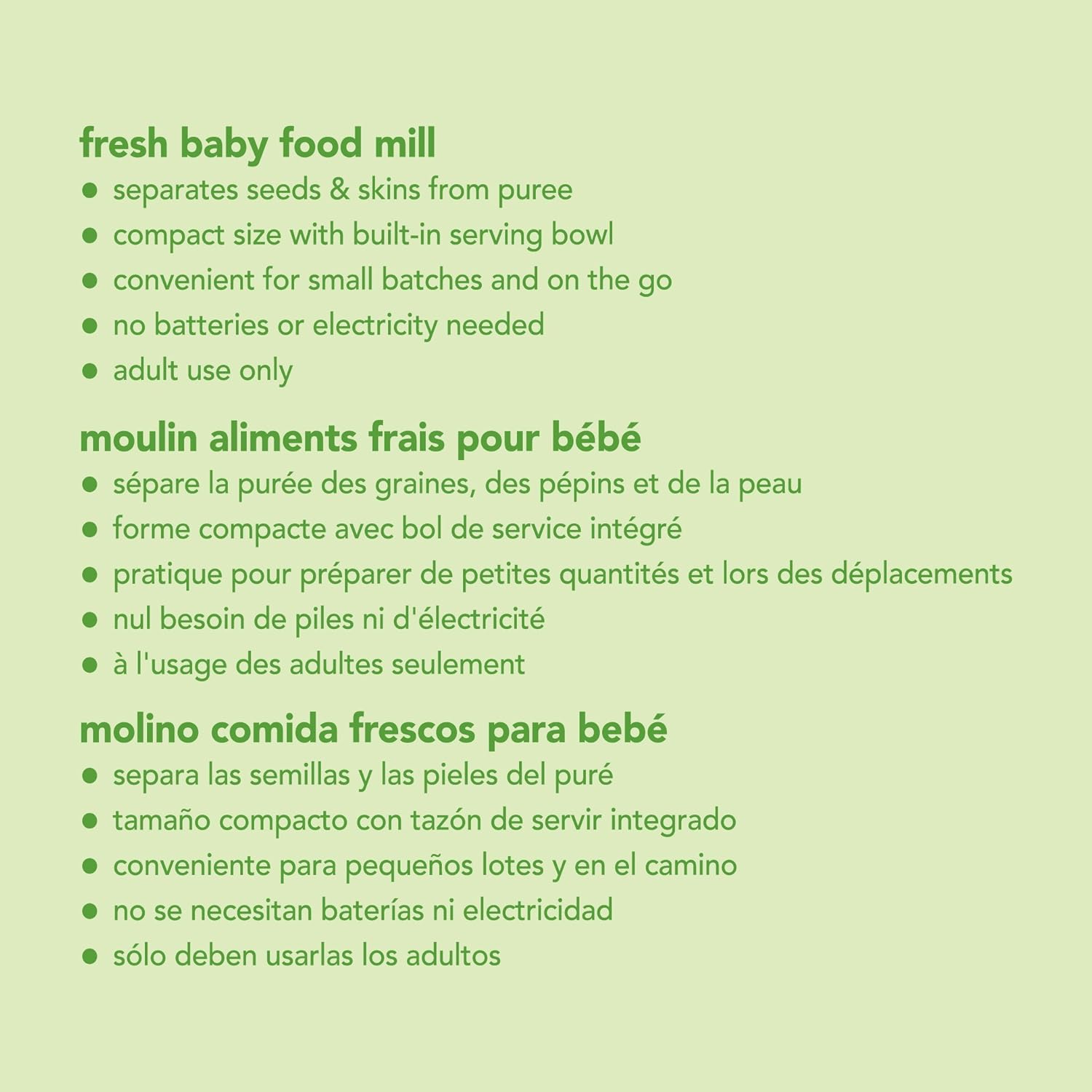 green sprouts Fresh Baby Food Mill - Easily Purees Food for Baby, Separates Seeds & Skins, Compact Size, No Batteries or Electricity Needed, Dishwasher Safe