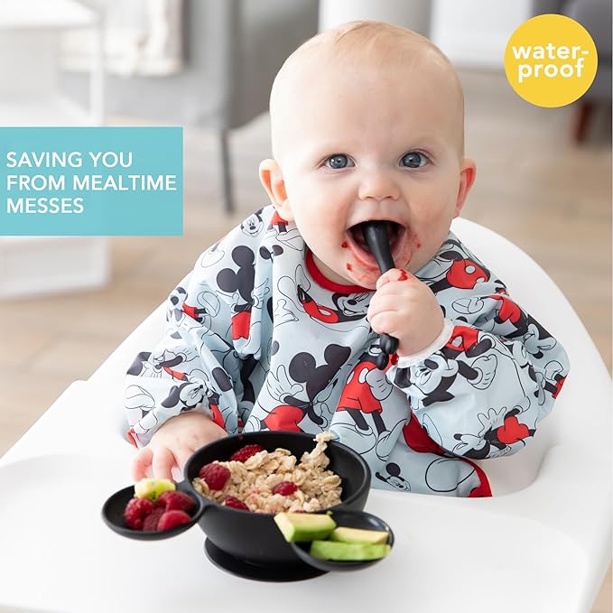 Bumkins Disney Bibs, Baby and Toddler Girls and Boys 6-24 Months, Long Sleeve, Essential Must Have for Eating, Feeding, Mess Saving Lightweight Waterproof Fabric Sleeved Smock, Mickey Mouse Classic