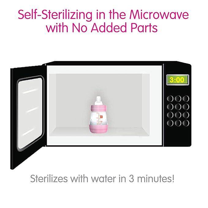 - EASY CLEAN - No need for a separate bottle sterilizer: MAM bottles self-sterilize in the microwave in 3 minutes, meaning less baby stuff to take on the go.