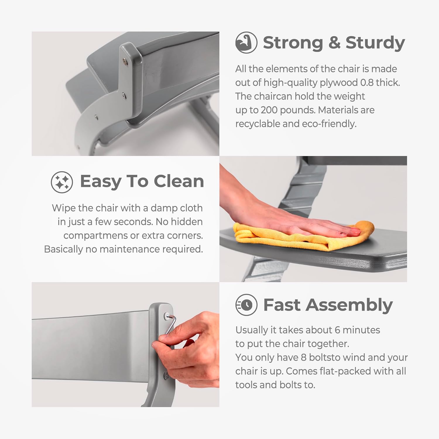 FORNEL Grey Wooden High Chair for Toddlers | The Grow-with-Me Adjustable Chair for Modern Farmhouse & Scandinavian Kitchens | A Smart Stokke Alternative