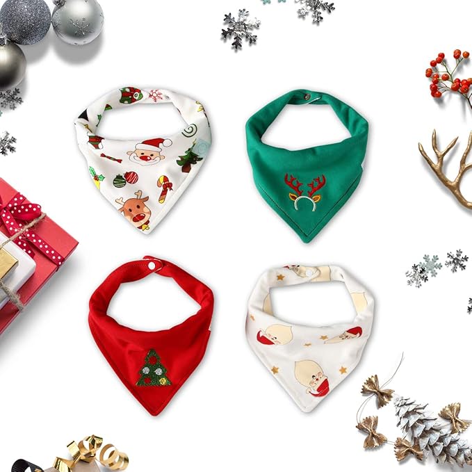 - GORGEOUS CHRISTMAS PRINTS - We chose the significant design from lovely elements in order to offer the cutest bandana bib for toddlers. The set of 4 baby bibs include various christmas elements, which are perfect accessories to any baby outfits with an added bonus of protecting their clothes.