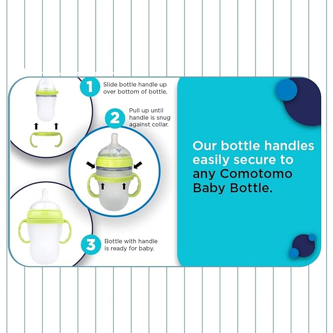 - AMAZING GRIP : The premium handles we offer are not only easy to attach to your Comotomo Baby Bottle but also stay securely in place. Their anti-slip design ensures that they are perfect for your baby's tiny hands.