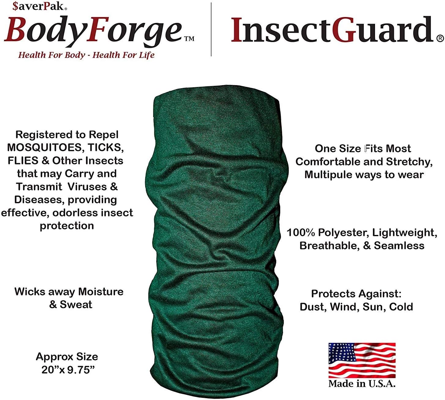 $averPak BodyForge & InsectGuard - Permethrin Treated Mosquitoes, Flies, Ticks & More Insect Repellent Tube Bandanna Neck Gaiter Headband (Green)