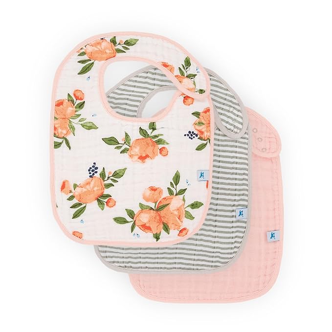 Little Unicorn Premium Classic Bib 3 pack | Adjustable as baby grows | Soft fabric on skin | Great for first time eaters (Watercolor Roses)