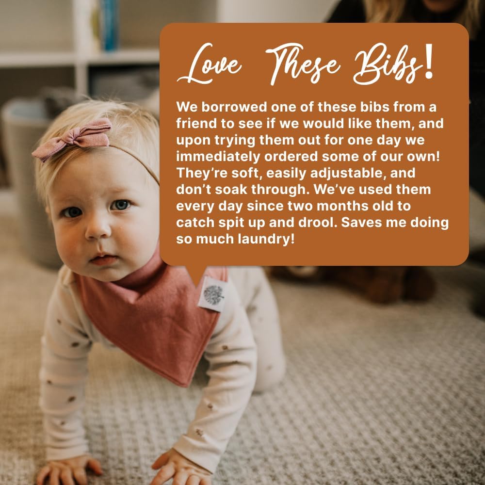 - SUPER SOFT, ABSORBENT & MESS-READY β Made with 100% cotton on the front and soft, absorbent polyester backing, these bibs catch drool, spit-up, and food messes, keeping baby dry, comfortable, and stylish all day long.