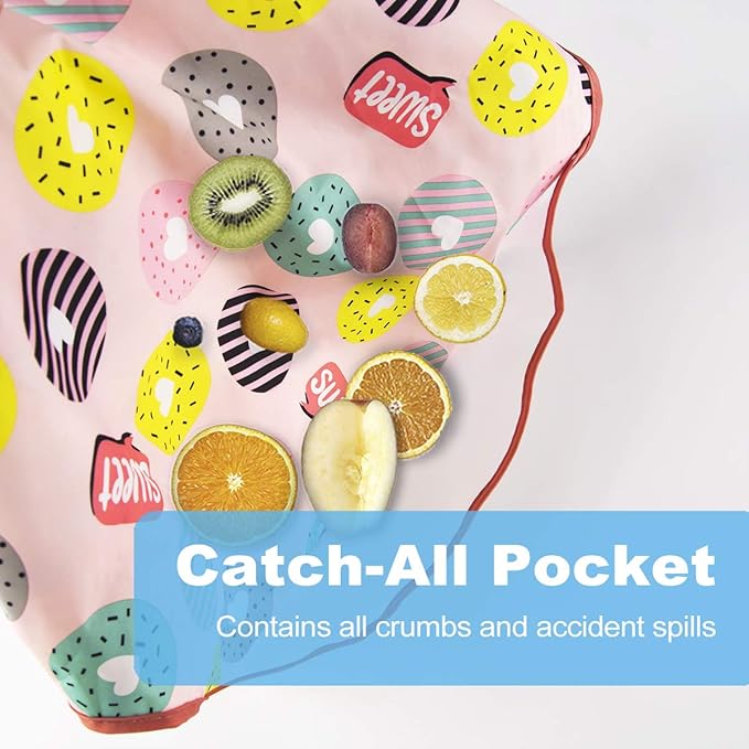 - Extra-Large Catch Pocket: A deep 3D pocket securely catches all dropped food, crumbs, and liquids, making these baby bibs for eating a laundry-saving lifesaver. It even doubles as a handy storage pouch for snacks or small toysâperfect for feeding and playtime in a single go