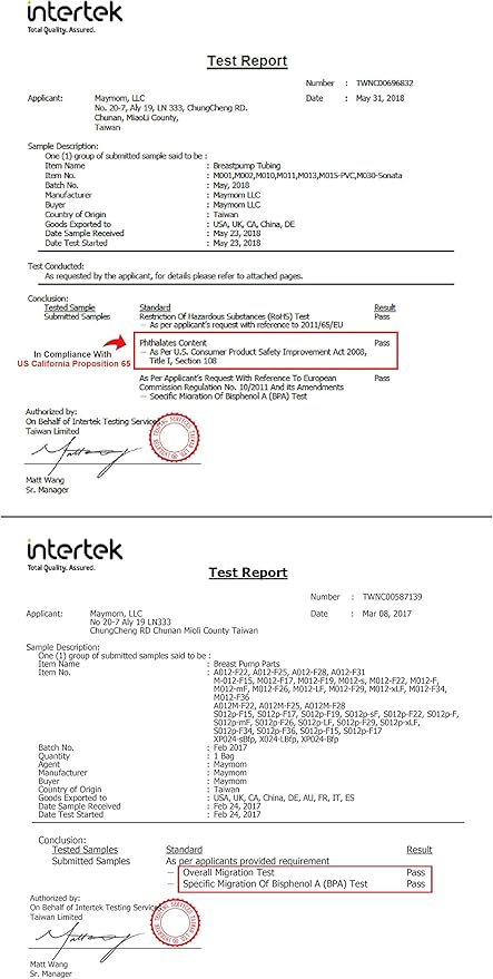 - MADE WITHOUT BPA. All products are inspected and in compliance with US FDA and EU standards for plastic that contacts food. Refer to Maymom test reports for detail.