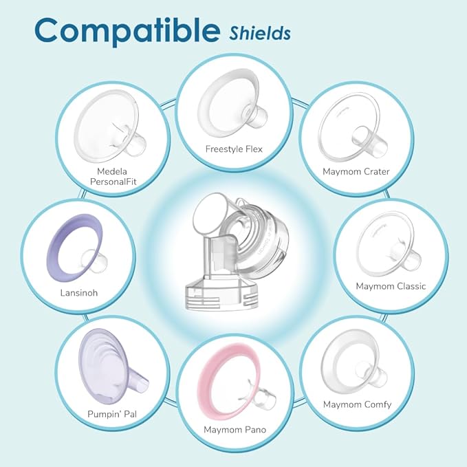 - 2x Base Connectors for use with Maymom MyFit Flange Series and Compatible with Medela PeronalFit Breast Shields and new Flex Shields