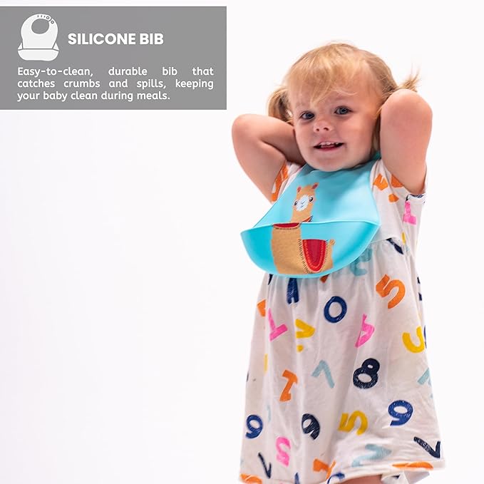 - 5 PC ESSENTIALS SET - The kit comprises essential items such as the Universal Bottle Top Adaptor, Resealable Food Container, Silicone Bib, Zipper Bag, and a Clear Two Pouch Travel Bag. The silicone bib comes with a dedicated pouch designed to catch any dripping food, enhancing mealtime cleanliness and making it a more enjoyable experience for both you and your younger one.