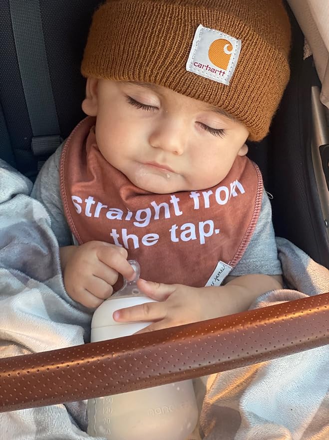 • SOFT MATERIAL AND MACHINE WASHABLE. 100% Organic cotton front with fleece backing and 100% adorable. This feeding bib is also conveniently washable. Coming in all neutral solid colors, these cotton bandana bibs are a perfectly comfortable and soft fit for your child. Very cozy and skin-friendly for your infant to wear while being both durable and machine washable make it a perfect gift for any parent. An adorable bandana with an adorable statement.