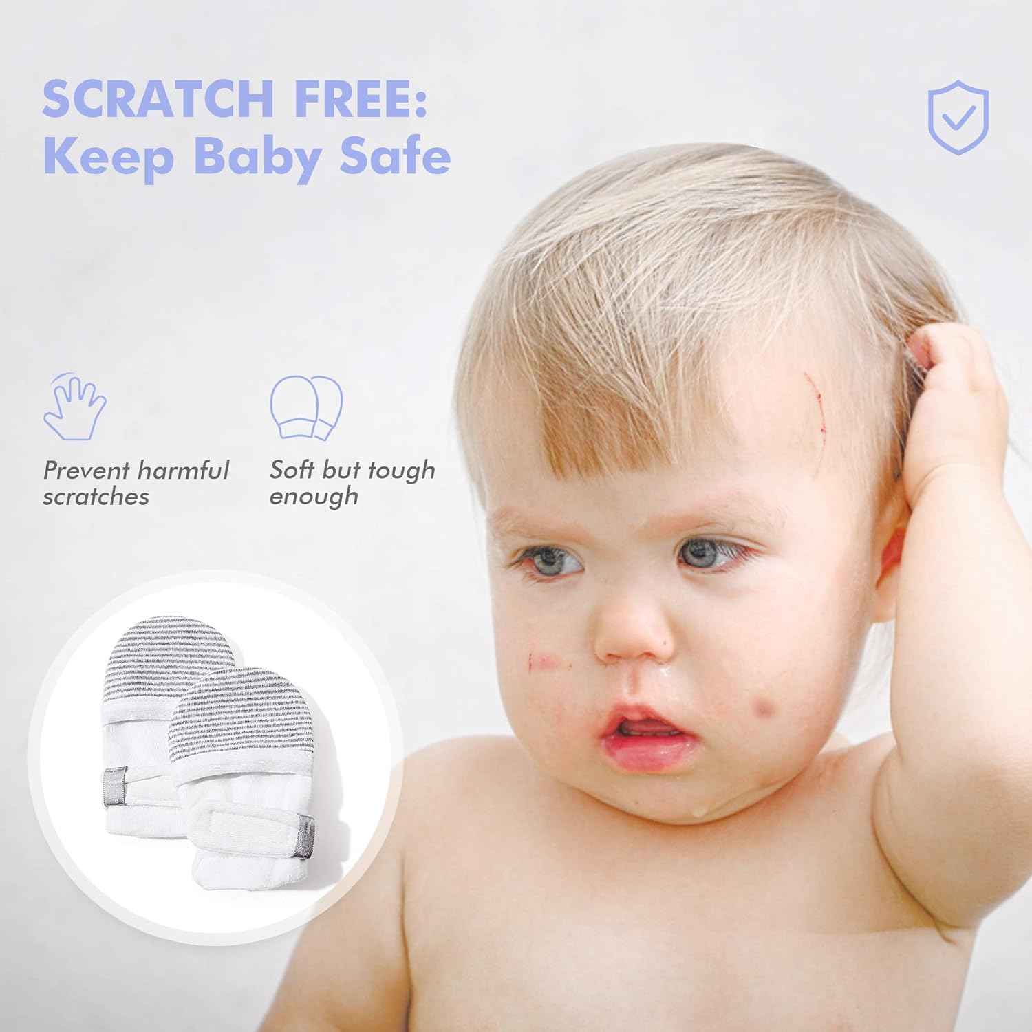 - [No Scratch: Keep Baby Safe]: These Anti Scratch Baby Mittens are designed to prevent harmful scratches & thumb sucking, also a big help with things such as Eczema, Dry Itchy Skin, Pulling hair, NG Feeding Tube and Squeezing during Breastfeeding