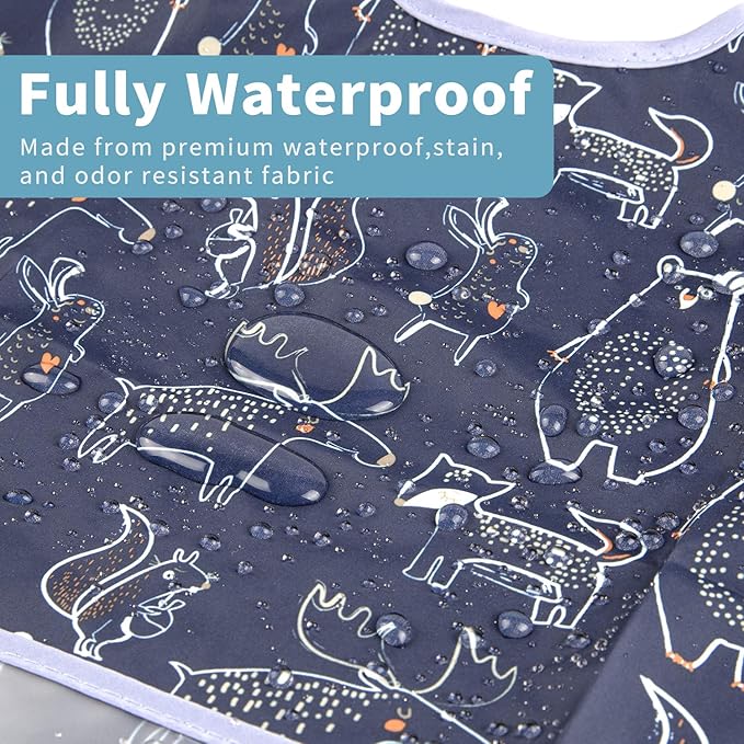 - Full Waterproof Protection: Crafted with premium lightweight PUL waterproof fabric, this long sleeve baby bib offers 100% leak-proof full coverage. Its advanced waterproof design blocks spills and splatters, revolutionizing mealtimeâno more messy clothes, just stress-free feeding, whether at home or during baby led weaning