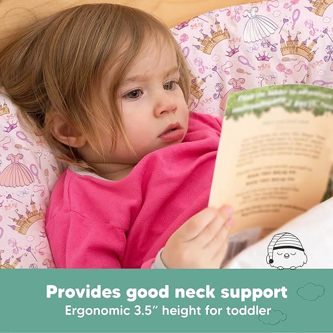 Toddler Pillow with Pillowcase - 13x18 My Little Dreamy Kids Travel Bed Pillows for Sleeping, Organic Cotton Small Pillowcase, Soft & Breathable, Machine Washable,Toddlers 2-5 years old(Dear Princess)