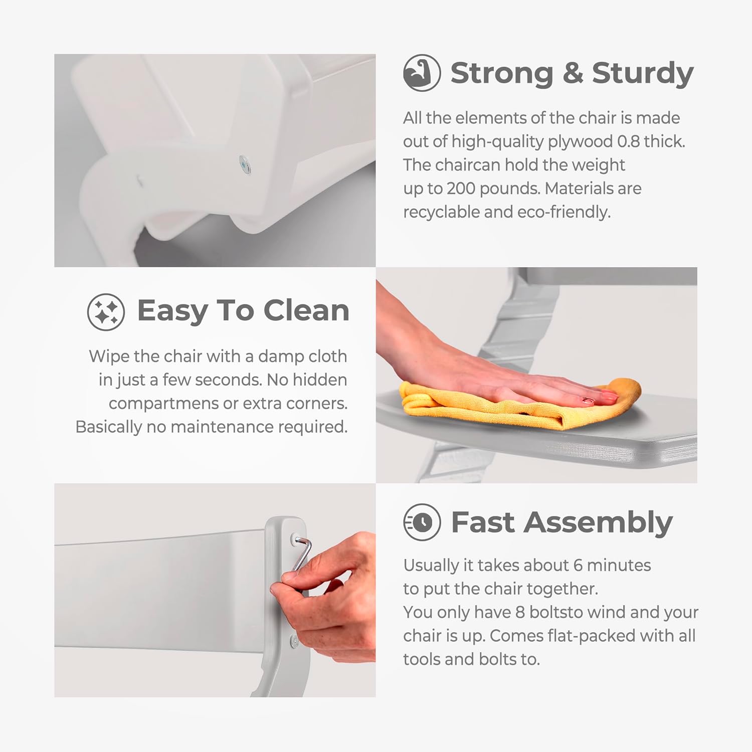FORNEL Modern White Wooden High Chair | The Forever Chair That Grows from Toddler to Adult (200 lb) | Sleek, Easy-to-Clean Scandinavian Design
