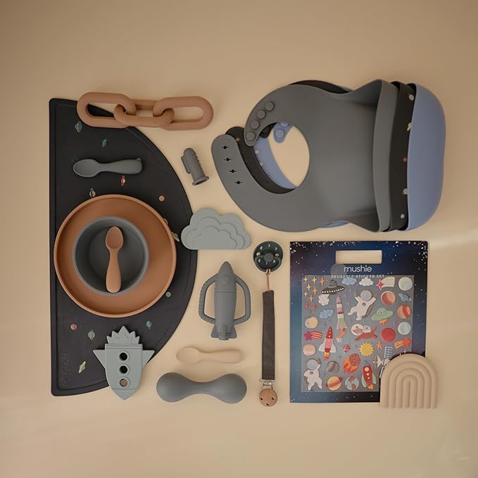 - Keep your little one feeling comfy and clean with our fun-loving collection of silicone bibs. Designed in Sweden, mushie bibs feature classic patterns capturing a look that's both timeless and elegant. Our timeless colors and patterns pair well with mushie silicone placemats, splat mats and tableware.