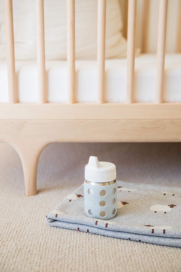 Lifefactory 8-Ounce Stainless-Steel Vacuum-Insulated Wide-Neck Baby Bottle with Hard Sippy, Stone Gray, LS2221WCG4