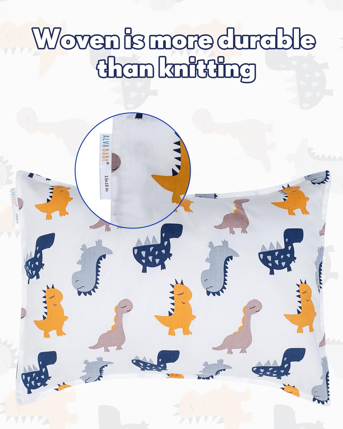 ALVABABY Toddler Pillowcases 2 Pack Organic Cotton Kids Pillow Cover Fit 13"x 18" or 12"x22" Envelope for Girl Boy Sleepy Travel