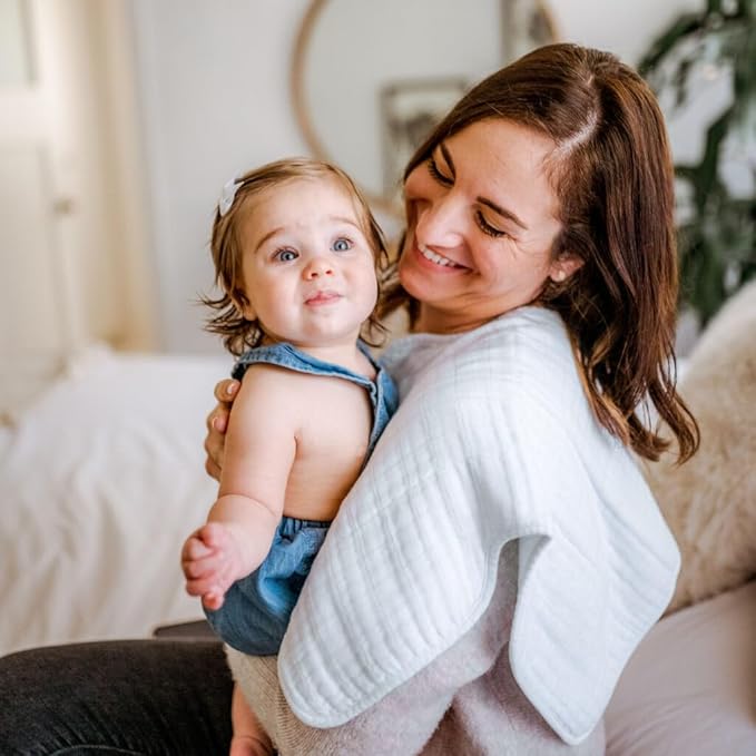 - INNOVATIVE SHAPE: For added protection, this extra-large 21” x 14” burp cloth gives ample coverage on your shoulder when holding and burping baby. Whether you’re holding your little one from a cradle position or upright, the ergonomic shape fits snugly around your neck.