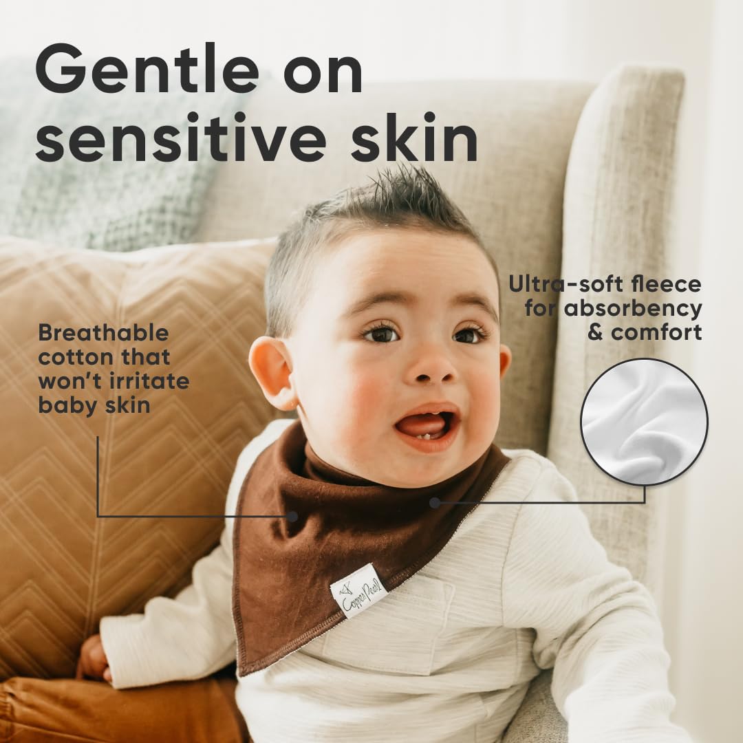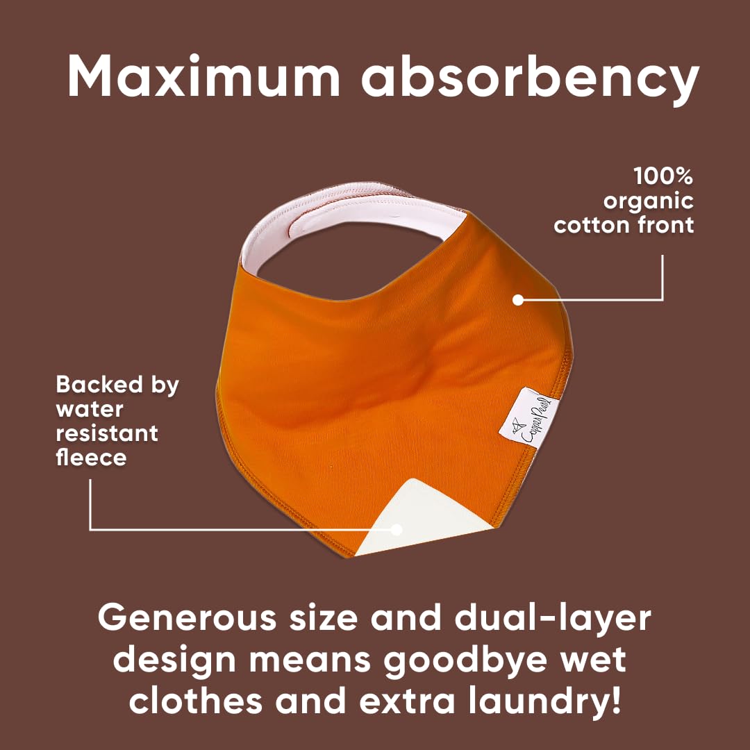 - MAXIMUM ABSORPTION: Fronted by ultra-soft Organic Cotton and lined with water-resistant polyester fleece to provide an extra layer of absorbency. Each bib is crafted with dual-layer protection against heavy drooling or spit-up, keeping your baby dry and comfortable.