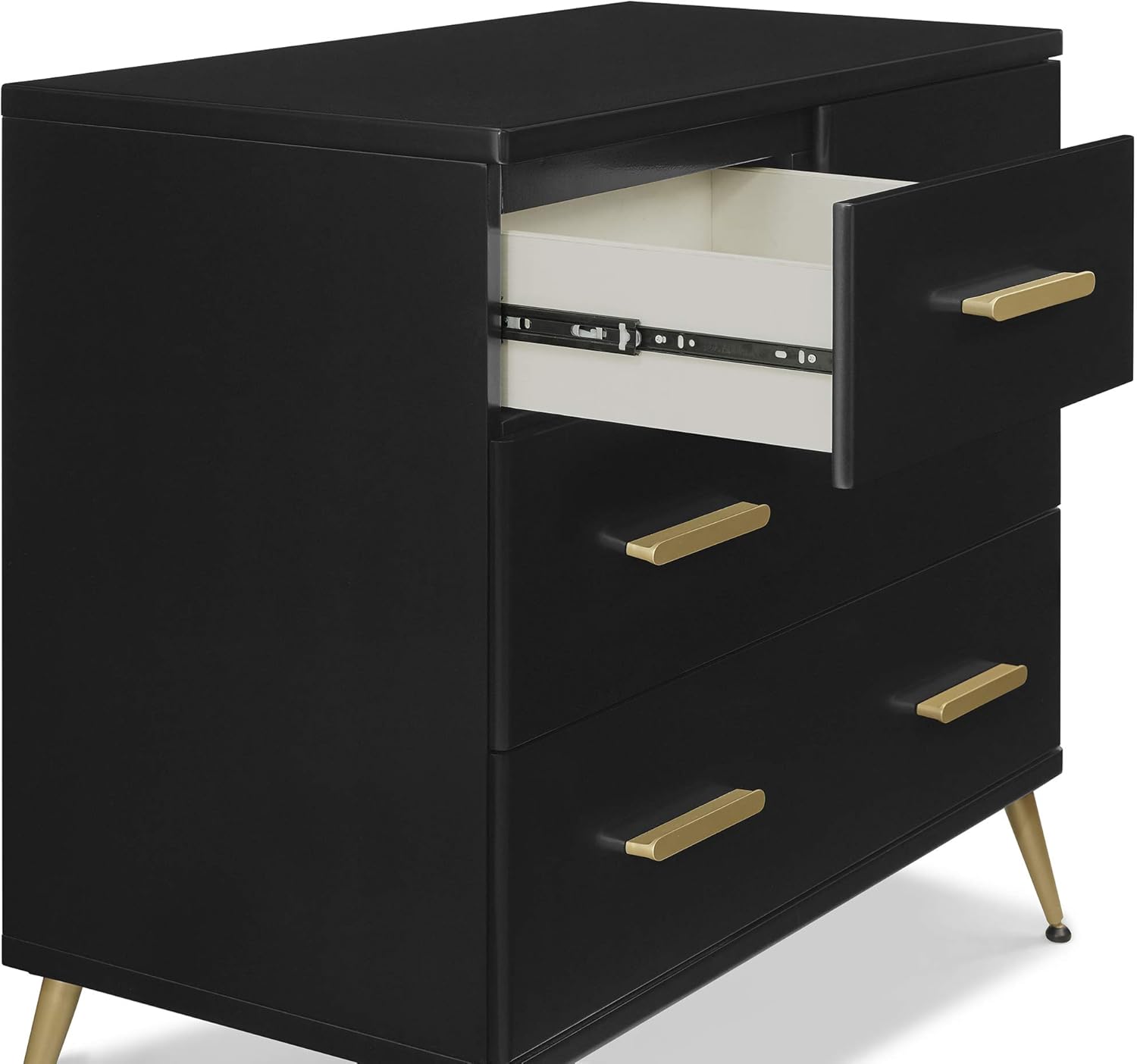 - Dresser Features: Crafted of sturdy, sustainable materials like New Zealand pine to give it plenty of longevity. For your child’s safety, this dresser is outfitted with an interlocking drawer system that limits the number of drawers that can be opened at one time. For additional security, we strongly recommend that all dressers in your home be anchored; dresser includes a wall anchor.