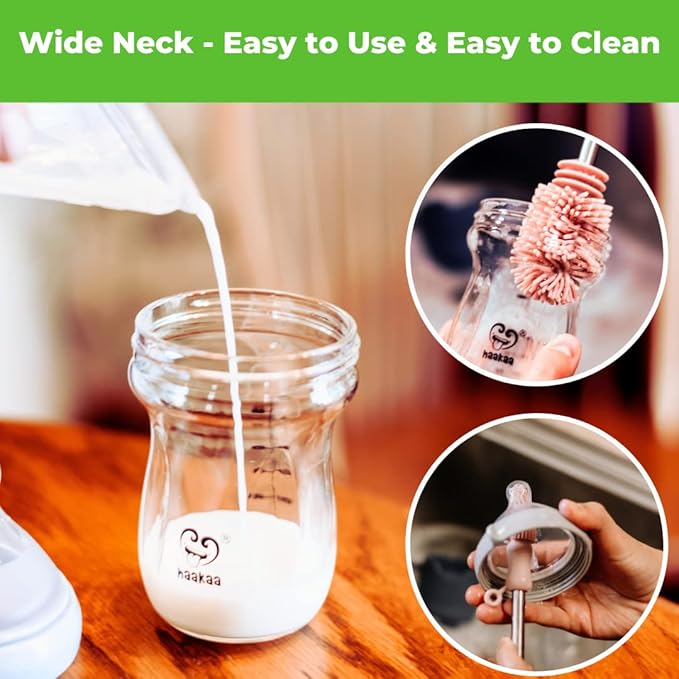 - Made with temperature-resistant borosilicate glass, food grade silicone and PP. Capacity: 6 oz/160 ml. Each bottle comes with a Variable Flow nipple (6 m +).