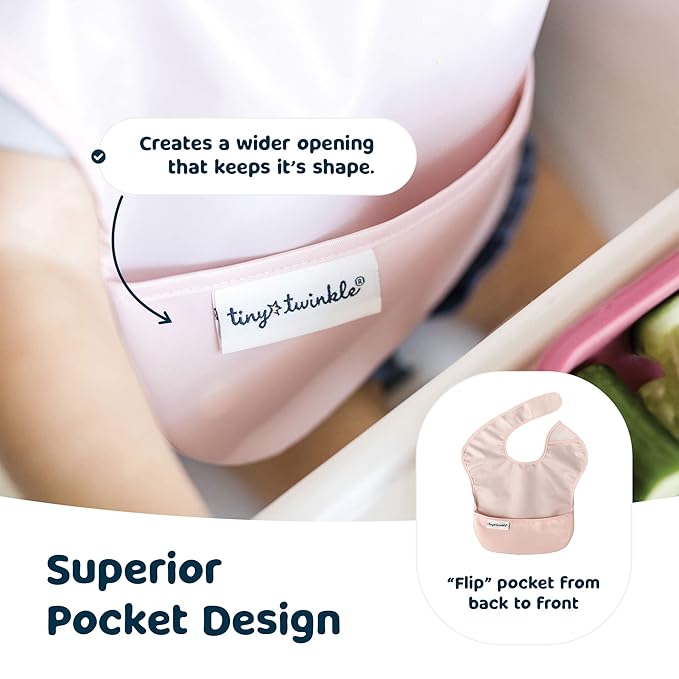 Tiny Twinkle Mess Proof Baby Bibs for Eating – Waterproof, Wipeable Toddler Bibs with Pocket – Baby Food Bibs for Girls & Boys(3 Pack,Blush, Burgundy)