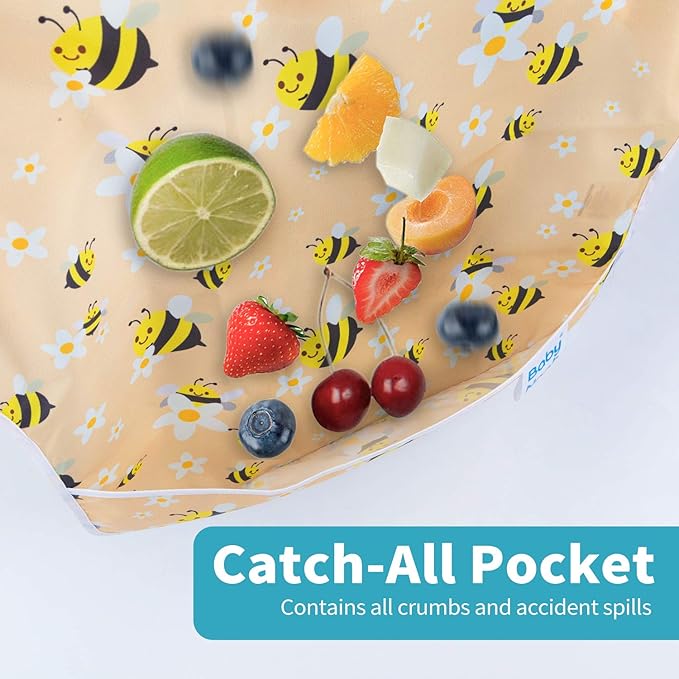 - 【Catch All Pocket】- Our crumb catcher keeps food and liquid off the floor! Keeping your baby’s clothes, high chair, and floor clean after meal time.