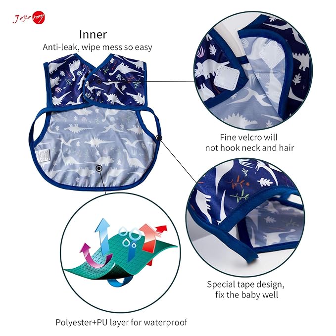 Joyo roy Mess Proof Baby Bibs 6-12 Months Waterproof Toddler Baby Boy Bibs for Eating Machine Washable Sleeveless Smock Bib Travel Reusable Led Weaning Apron for Feeding Bib with Food Catcher