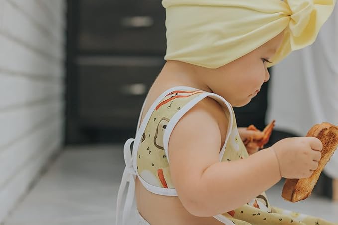 - RECOMMENDED BY PEDIATRIC FEEDING EXPERT: Baprons come highly recommended by pediatric feeding experts. Our unique design ties around the body, prioritizing safety and comfort for infants and toddlers. Baprons are intentionally pocket-less, eliminating extra weight that could otherwise pull on your baby's neck and cause potential neck injury or skin irritation. Baprons are safe for sensitive skin, children who dislike traditional bibs and/or have hypersensitivity to sensory stimuli.
