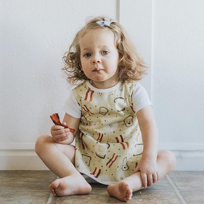 BapronBaby Eggs & Bacon Bapron - No Neck Tie Safer Bib for Baby & Toddler - Soft Waterproof Stain Resistant - Machine Washable - Sz Preschool 3-5yrs
