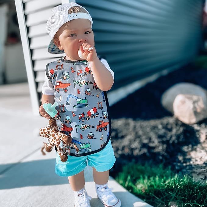 BapronBaby Construction Zone Bapron - No Neck Tie Safer Bib for Baby & Toddler - Soft Waterproof Stain Resistant - Machine Washable - Sz Baby/Toddler 6m-3T