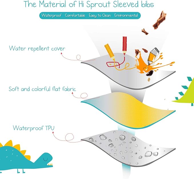 Infant Toddler Baby Waterproof Sleeved Bib, Bib with Sleeves&Pocket, 6-24 Months