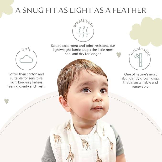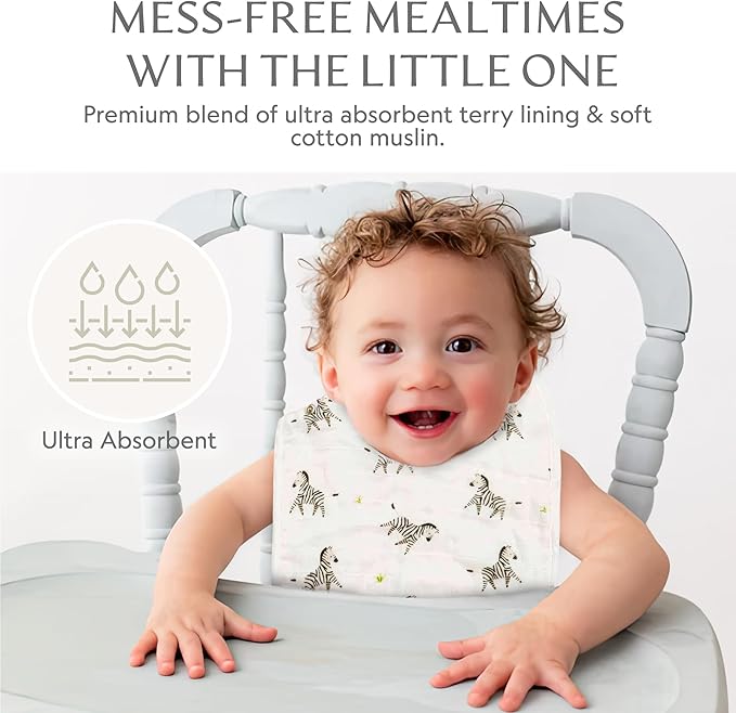Bamboo Little Bamboo Viscose Baby Bib Set (2-pack), Giraffe & Zebra - 70% viscose made from bamboo, 30% cotton muslin, Imported