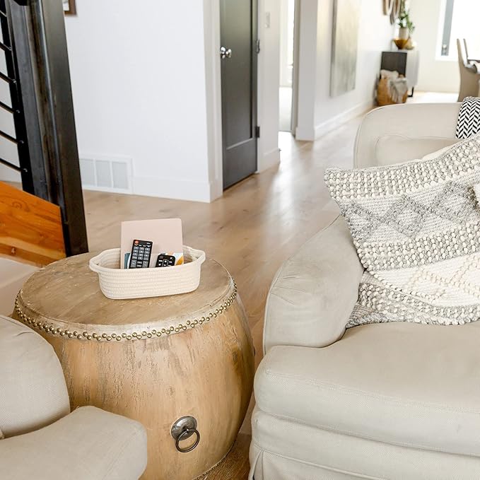 - DOUBLE REINFORCED & SCRATCH-FREE DESIGN: When you’re a full-time mom or dad, you need a storage solution that works just as hard as you do. With reinforced stitching on the handles and base, our woven storage basket set is ready to tackle some heavy-duty actions and will sustain the roughest toddler play. With our soft yet firm handwoven rope basket designs, you’ll never have to worry about scratches or marks being left on your coffee table, shelf, front door table, nightstand or any tabletop.