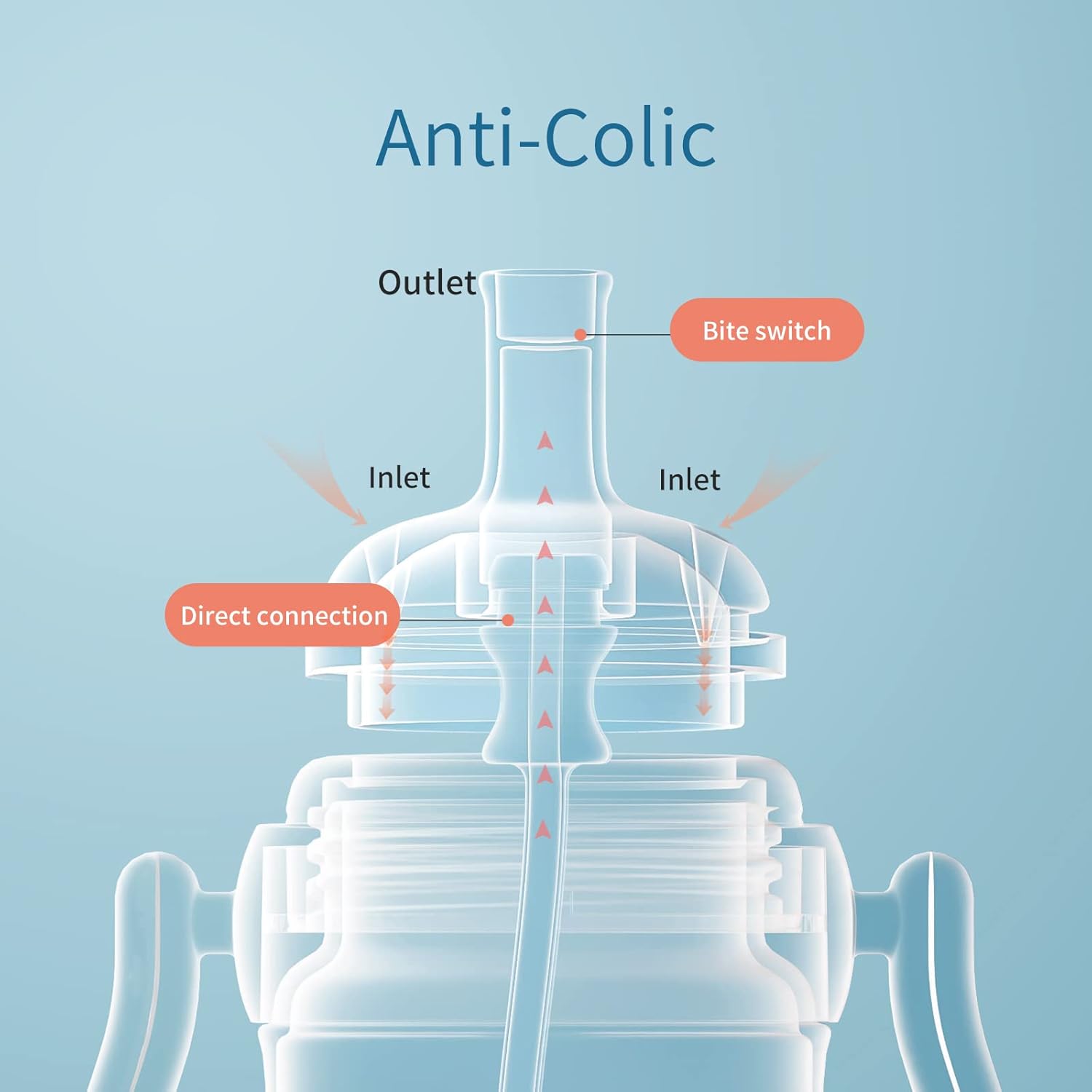 - Innovative Nozzle: The suction nozzle is a straight opening, even if the cup is upside down, it will not leak. The suction nozzle is of suitable height and fits the mouth, making it more comfortable for the baby to suck milk. The design of two air pressure holes can keep the air pressure balance between the inside and outside of the water cup, avoiding baby being flatulence.
