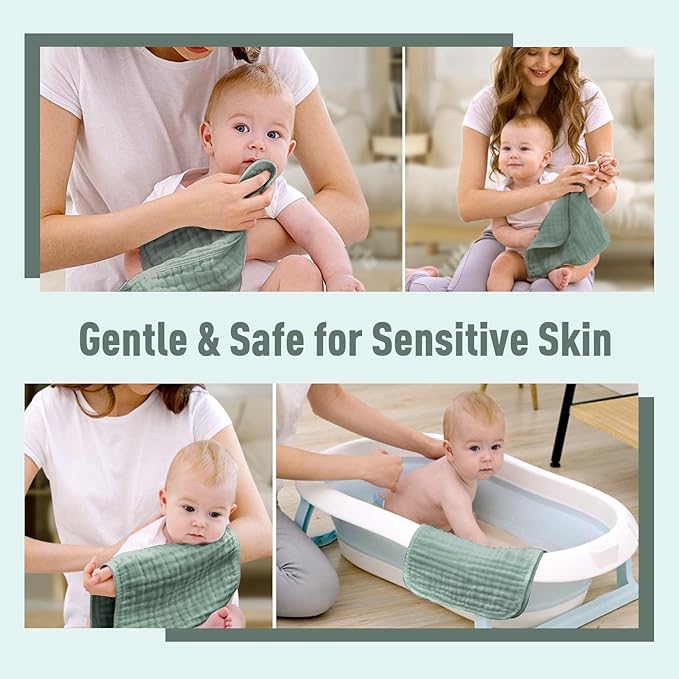 Yoofoss Muslin Burp Cloths for Baby 10 Pack 100% Organic Cotton Baby Washcloths for Boys Girls Large 20''X10'' Super Soft and Absorbent Dark Green