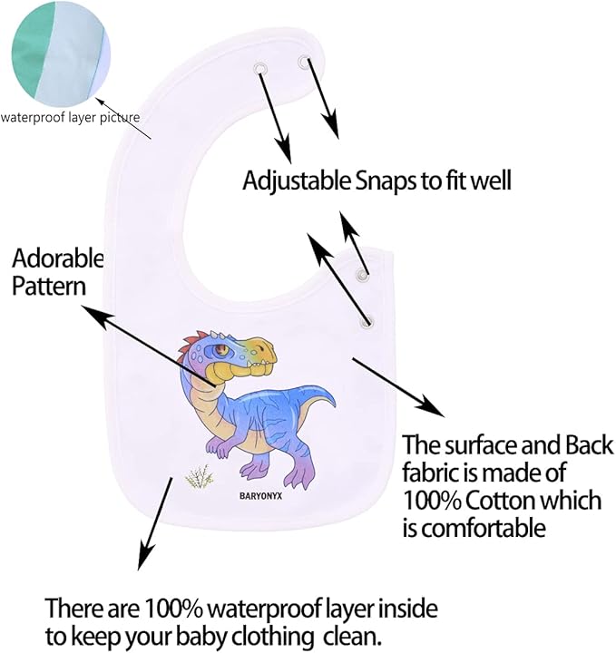 - 5.NOTE:THERE ARE TPU WATERPROOF LAYER INSIDE ,SO IF YOU WASH OR DRY IN HIGH TEMPERATURE ,THE BIBS WILL SHRINK ABOUT 0.5 CM