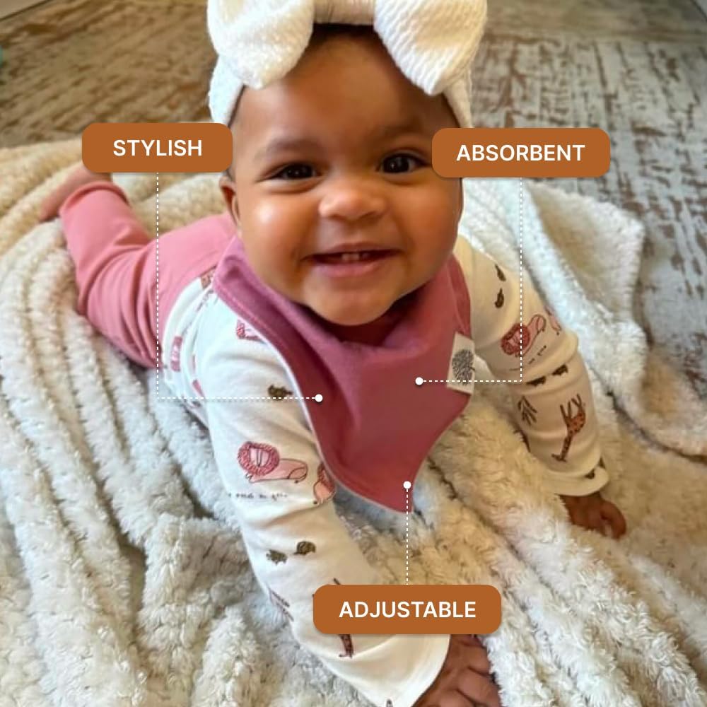 - SUPER SOFT, ABSORBENT & MESS-READY β Made with 100% cotton on the front and soft, absorbent polyester backing, these bibs catch drool, spit-up, and food messes, keeping baby dry, comfortable, and stylish all day long.