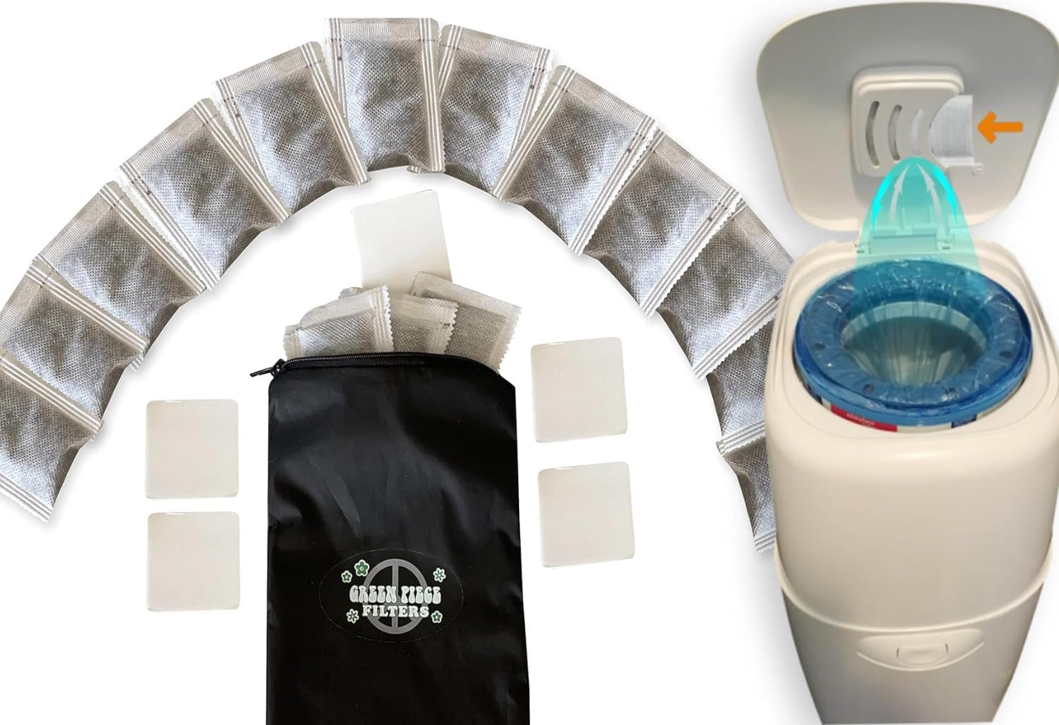 Green Piece® Pack of All Natural Baby Diaper Pail Deodorizer Activated Charcoal Air Purifier (15 Pack of Carbon Filters)