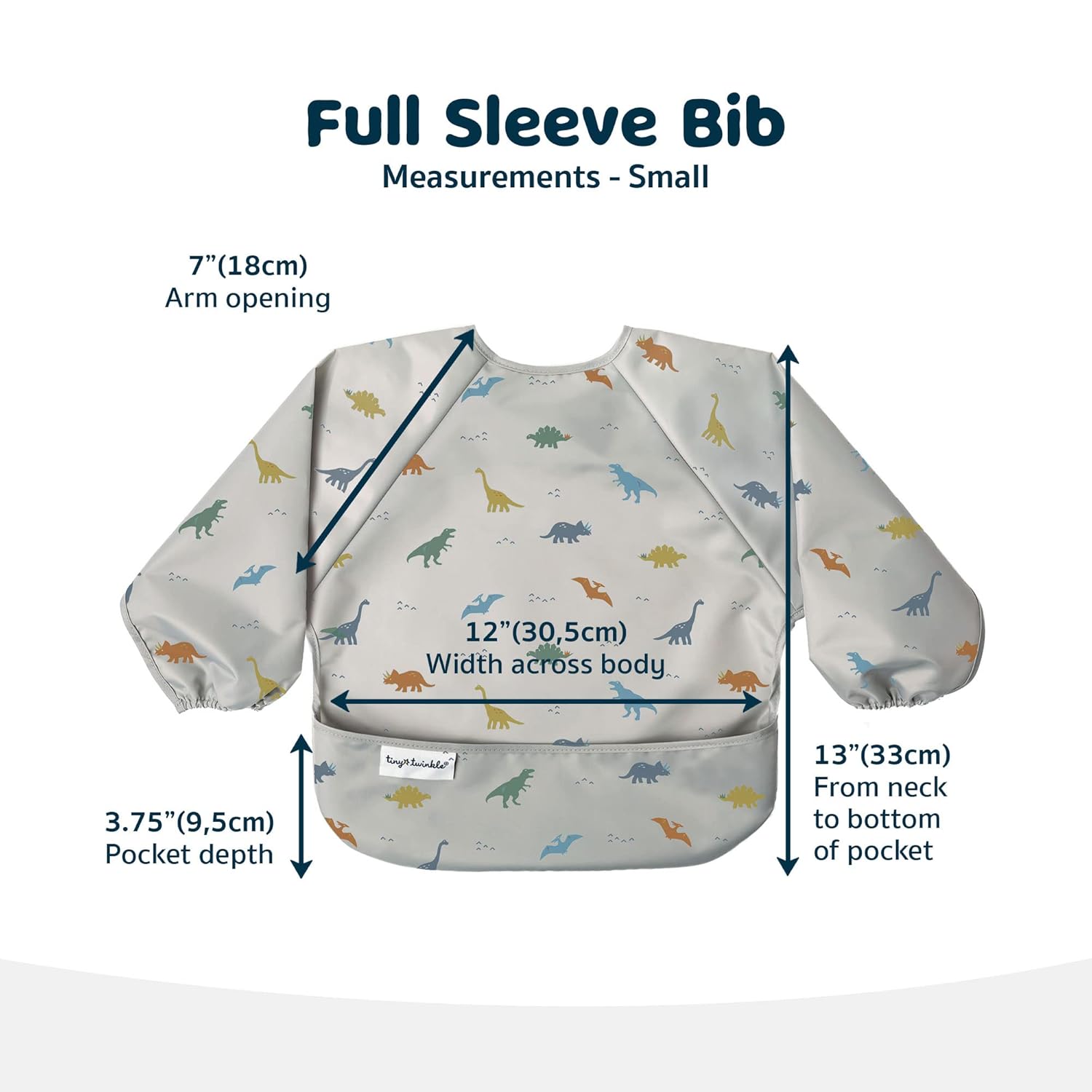 Tiny Twinkle Mess Proof Baby Bib,Waterproof Smock Baby Bib for Eating,Machine Washable Long Sleeve Bib,Baby Led Weaning,Toddler Bib,BLW Supplies(Dinosaur, Small 6-24 Months)