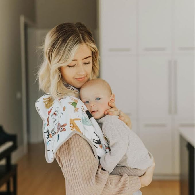- SUPER ABSORBENT: Our Woof burp cloth features multi-layered & breathable cotton muslin. The fabric’s thickness quickly soaks up spills and drool. Keep clothing clean and dry while burping baby!