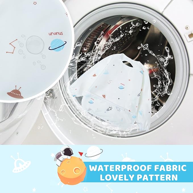 - Cute pattern: our bibs have beautiful colours and patterns, which are very suitable for boys and girls. Especially for children who like to paint and play, long-sleeved bibs can protect babies and their clothes from stains.