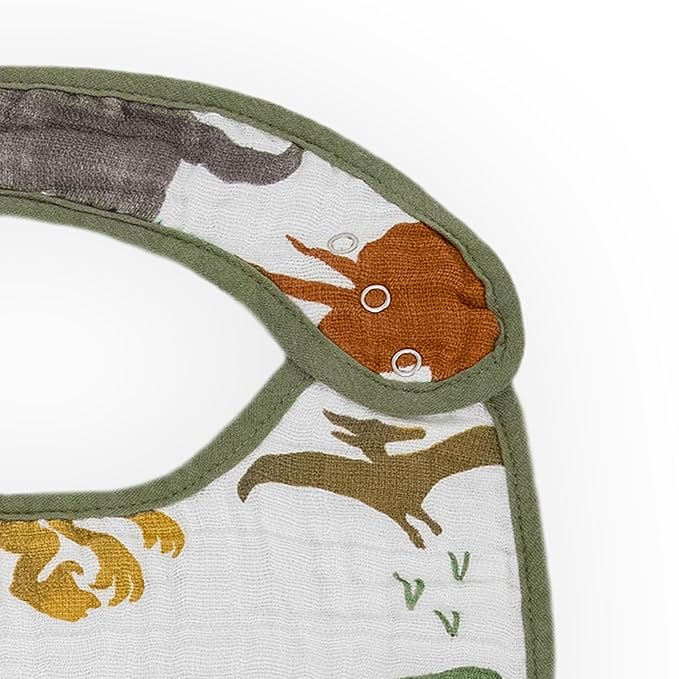 Little Unicorn Premium Classic Bib 3 pack | Adjustable as baby grows | Soft fabric on skin | Great for first time eaters (Dino Friends 2)