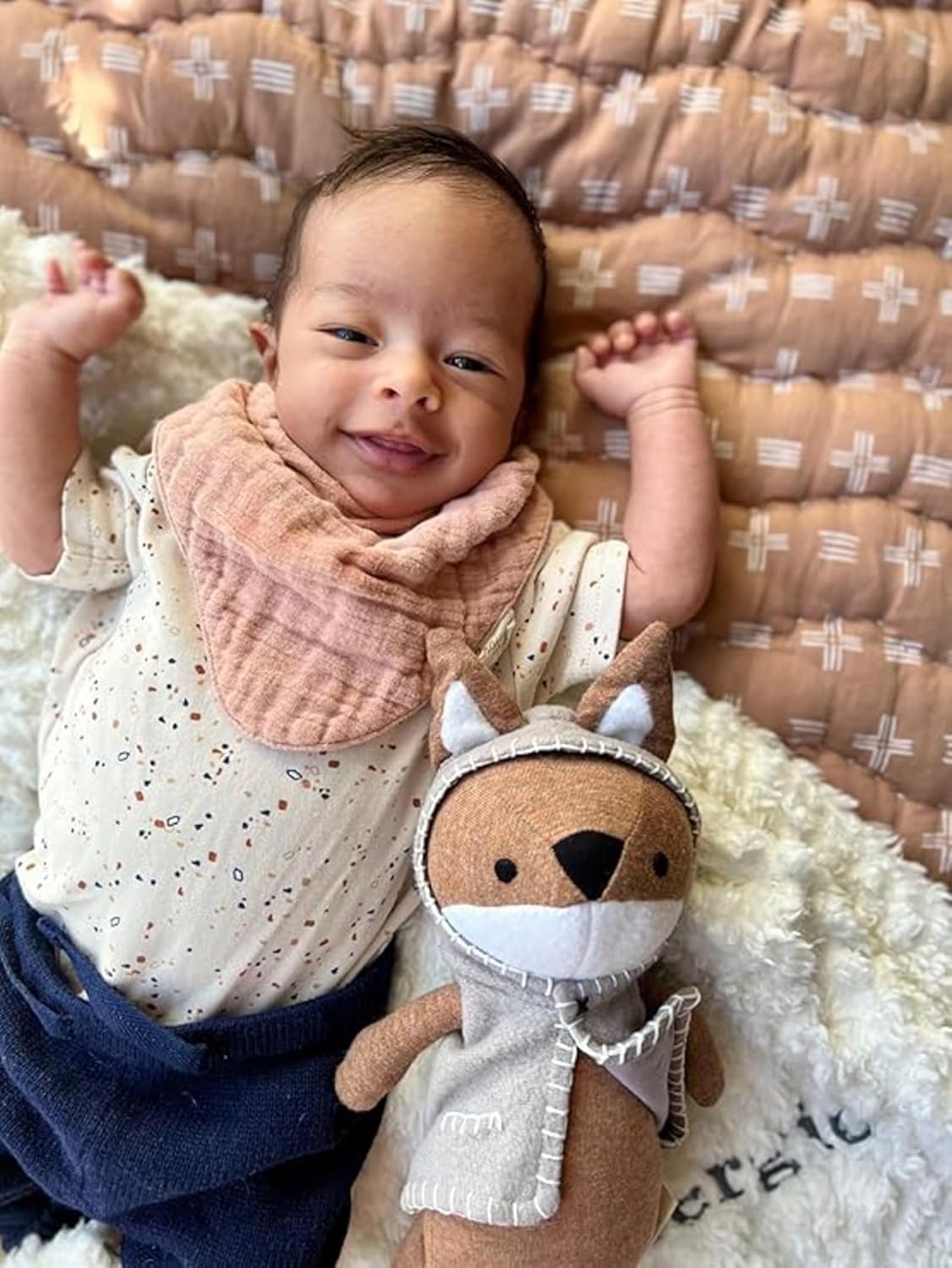 - Versatile Use - Made with soft, lightweight 4-layer muslin, great for teething babies, meal time, and stylish comfort