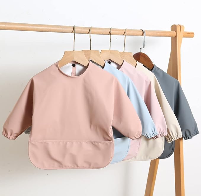 - Long sleeve bibs:The long-sleeved baby bib can not only keep the clothes clean when eating, but also keep the baby clean when doing graffiti or any occasion is easy to dirty clothes.A good art smock.