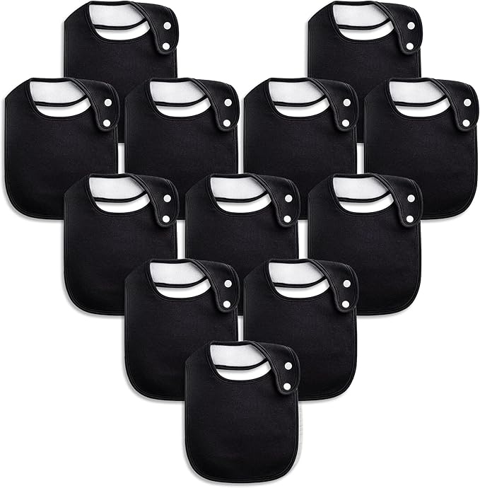 - 【DIY SUBLIMATION DESIGN】This set of baby bibs consists of 12 black ones, a sufficient number for you to give full play to your design and imagination to make the bibs further sublimated. You can print patterns or baby's name on its surface to make the bibs more fashionable and popular and versatile.