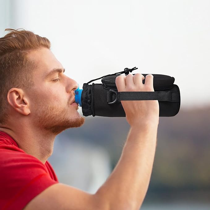 - icolor Sports Wide Mouth Bottle Accessories for Hiking Travelling Camping: Have Adjustable Padded Shoulder and Handle Strap. It is with 2 zipper Pockets too,The small zipper pocket is for cash and card, the large zipper pocket is for smartphone, keys & other.