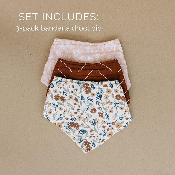 Mebie Baby Muslin Cotton Bib, 3 pack, Baby Bib Set for Burp, Spit Up, Drool, Bandana Bibs for Baby Boy or Baby Girl