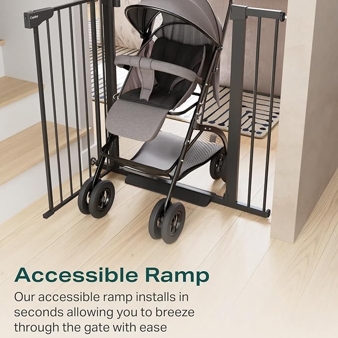 - Enhanced Safety and Two-Way Access – Our extra tall baby gate utilizes a double-lock safety release to keep toddlers from opening the door. It also swings open in both directions with a 90° open and stop and automatic closure for added safety